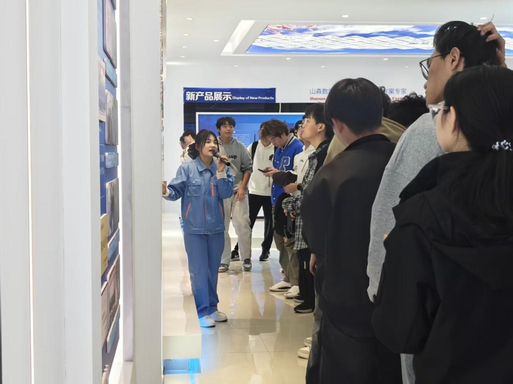 本届展会以“生态协同·智赢未来”为主题,由山东山森数控技术有限公司主办,滕州市机床产业发展中心等单位承办。在讲解员的引导下,同学们依次参观了生产车间、研发中心和智能制造展示区。在生产车间,整洁明亮的操作环境、精准运转的操作流程令同学们印象深刻,大家亲眼见证了机械零部件的制造与加工过程,感受了工业生产的严谨与高效。研发中心汇聚了来自全国各地的优质企业及其前沿应用,进一步拓宽了同学们对产业链全景和专业未来前景的认知。在智能制造展示区,种类繁多、加工精良的部件实物吸引了同学们驻足良久,大家近距离观察、询问,加深了对核心部件的直观认识。同学们不时驻足询问,在与参展技术人员的深入交流中缩短着理论与生产实际的距离,现场互动氛围融洽。