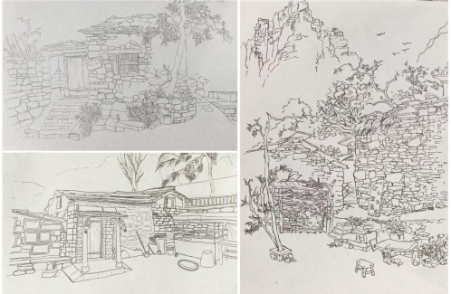 为有效检验学习成效、巩固教学成果,实习期间组织了两次专业考试。考试内容紧密围绕各阶段写生与考察主题,重点评估学生的观察、表现及创意转化能力。从考试结果看,学生们在手绘表达、构图以及对自然、文化元素的解析与转译能力上均展现出显著进步,充分验证了此次主题化、系统化实践教学的有效性。