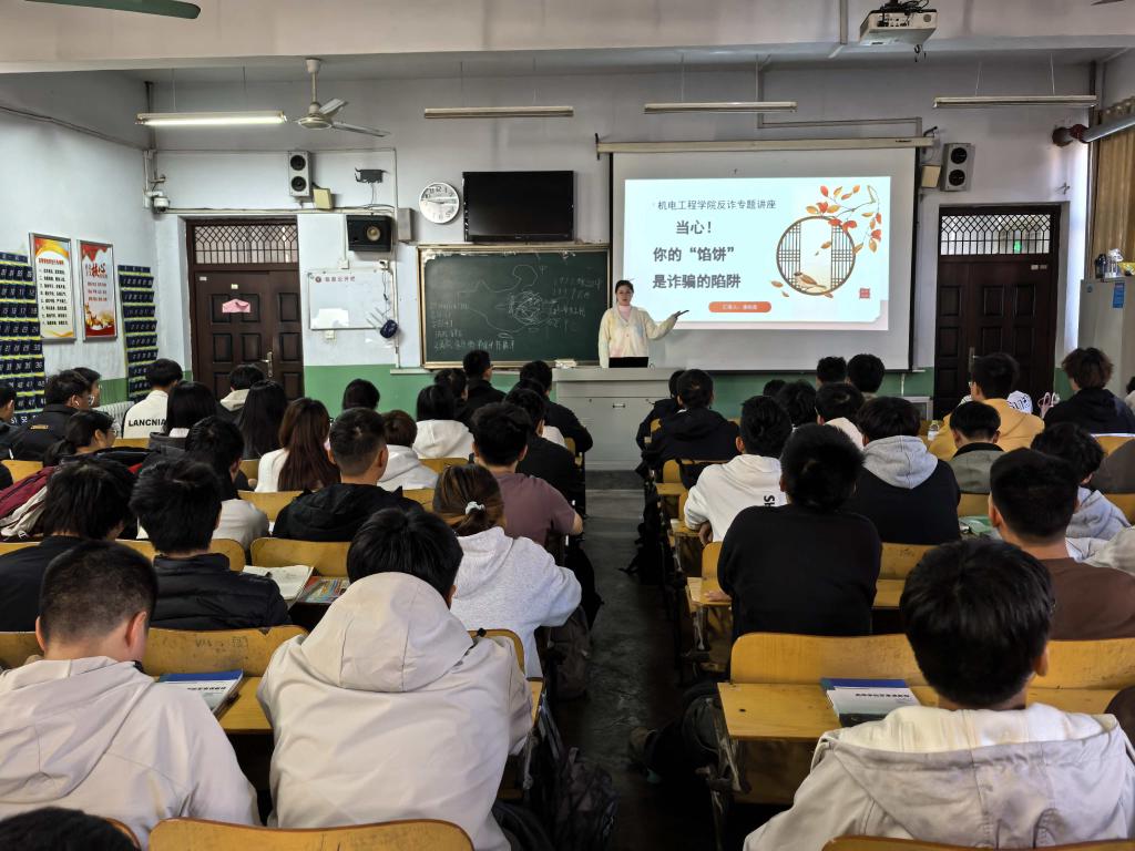 为切实提升2025级新生的安全防范意识与自我保护能力,有效预防和减少校园电信网络诈骗案件的发生,11月11日下午,球友会在文科楼101举办“当心!你的‘馅饼’是诈骗的陷阱”反诈专题讲座。本次活动由专职辅导员潘婉鑫主讲,新生代表聆听讲座。