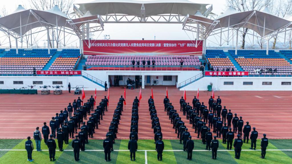 梁龙雨警长向警航大队授旗,并向首批警务协作“飞手”颁发聘书。他在讲话中强调,无人机应用是公安战斗力提升的关键环节,希望以中心为纽带,持续深化警校在技术研发、人员培训、实战应用等方面的合作,将合作成果切实转化为维护安全稳定的实效。随后,他宣布比赛开始。