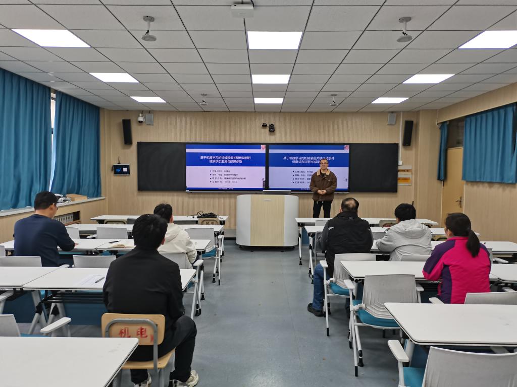 孙泽金博士做了题为《基于机器学习的机械装备关键传动部件健康监测与故障诊断》的报告。报告围绕实际工业场景中早期故障预警、小样本故障诊断以及变工况工作情况下的故障诊断问题展开研究。设计的图嵌入机器学习方法借助先进的图谱理论、正则化优化技术以及稀疏理论可以很好的利用采集的机械设备的运行状态信息,自适应的建立预警阈值实现传动部件的早期故障检测,小样本故障诊断和变工况运行条件下的智能诊断。
