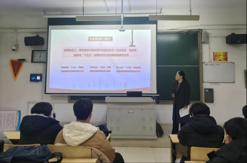 为深入学习贯彻党的二十届四中全会精神,强化青年学子的思想与责任担当,我院于12月17日开展党的二十届四中全会精神专题宣讲,学院院长卢纪丽为新生班级作集中宣讲报告。