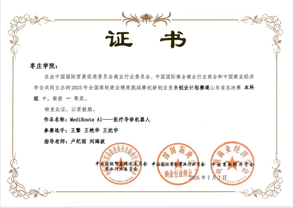 近日,2025年全国高校商业精英挑战赛创新创业竞赛创业计划赛道省级决赛圆满落幕。我校师生积极备赛,喜获一等奖2项、二等奖2项、三等奖3项。