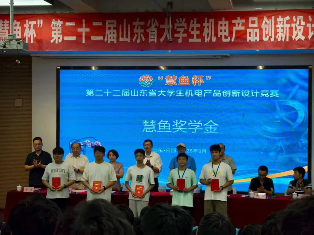 2025年8月25日-27日,第二十二届(2025年)山东省大学生机电产品创新设计竞赛决赛在日照落下帷幕。我院参赛队员凭借扎实的专业功底、创新的设计理念与出色的实践能力,斩获一等奖3项、三等奖2项,并荣获“慧鱼奖学金”1项。
